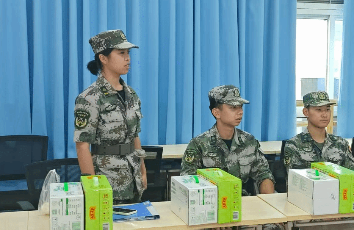 邱树华结合当前国防建设趋势与社会对青年的期望,对教官们提出要求与寄语,强调军训不仅是新生素质提升的关键环节,更是培养青年国防意识、服务国家需求的重要契机,鼓励教官们以高标准带训,助力新生打好大学学习生活基础,同时在带训中实现自我历练与提升。最后,学院为教官们送上慰问物资,对学生教官为学校及学院军训教育工作的付出表示感谢。