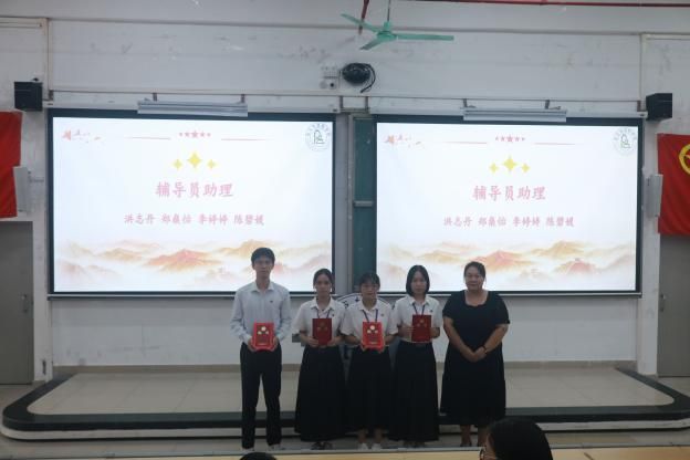 会议伊始,全体师生肃立,奏唱国歌。随后,进行学生干部受聘环节。