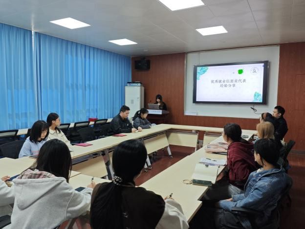 会议伊始,学院为2025届就业信息员代表颁发聘书。2025届优秀就业信息员代表黄晓敏进行工作经验分享,她提到就业信息员们应当要保持礼貌和耐心,积极寻找解决问题的方法。2025届辅导员助理陈海对上一学年就业工作进行总结,告诉全体就业信息员要仔细研读工作通知,确保任务精准落实、按时完成。会议最后,刘勇和同学们进行会议交流,他对就业工作的重要性和严谨进行了阐述,强调对待毕业生要 “将心比心”,真诚主动与毕业生沟通,为就业工作对象细致服务。
