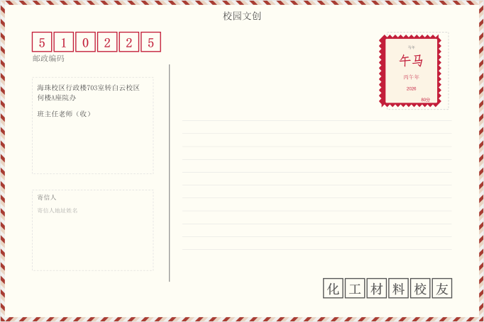2026年化工学院校友校庆返校日拟设定2026年4月18日,白云校区报告厅门口签到处将设置“学院发展老照片”和“校庆送祝福”留言两面展板墙,校友可以留下对学校学院的祝福,也可以拍下展板中的 线上“校庆送祝福”活动二维码进入会场后发送祝福。